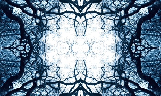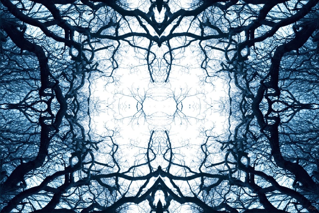 Kaleidoscopes through color leaves in the dusty, dusky hospital skylight