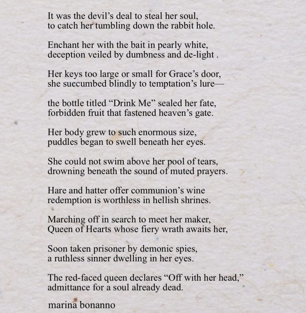 The bottle titled “Drink Me” sealed her fate—