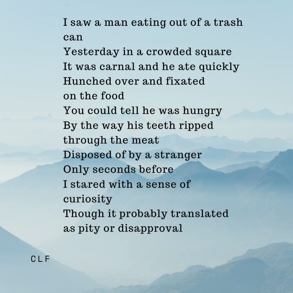 I saw a man eating out of a trash can