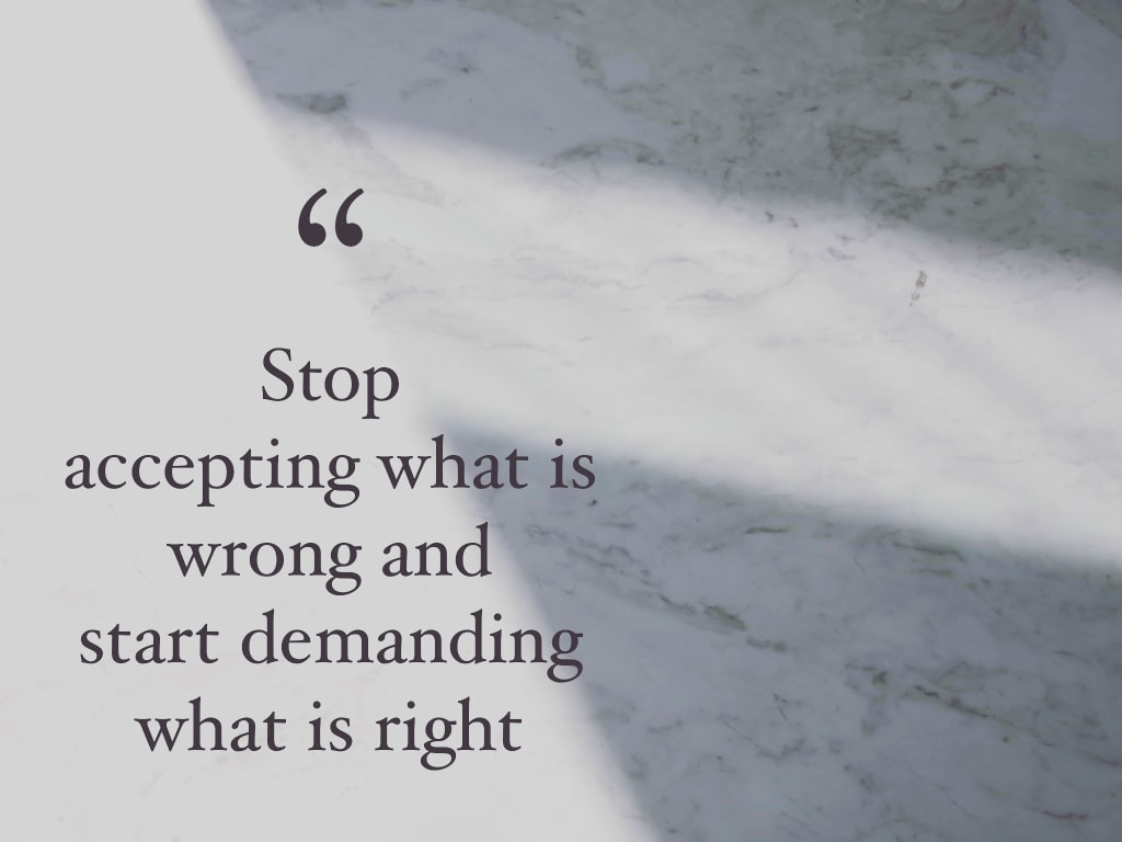 Stop accepting what is wrong and start demanding what is right.