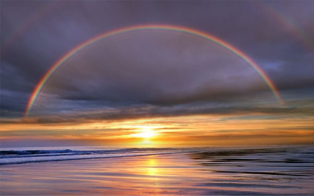 A rainbow... shone across the horizon,