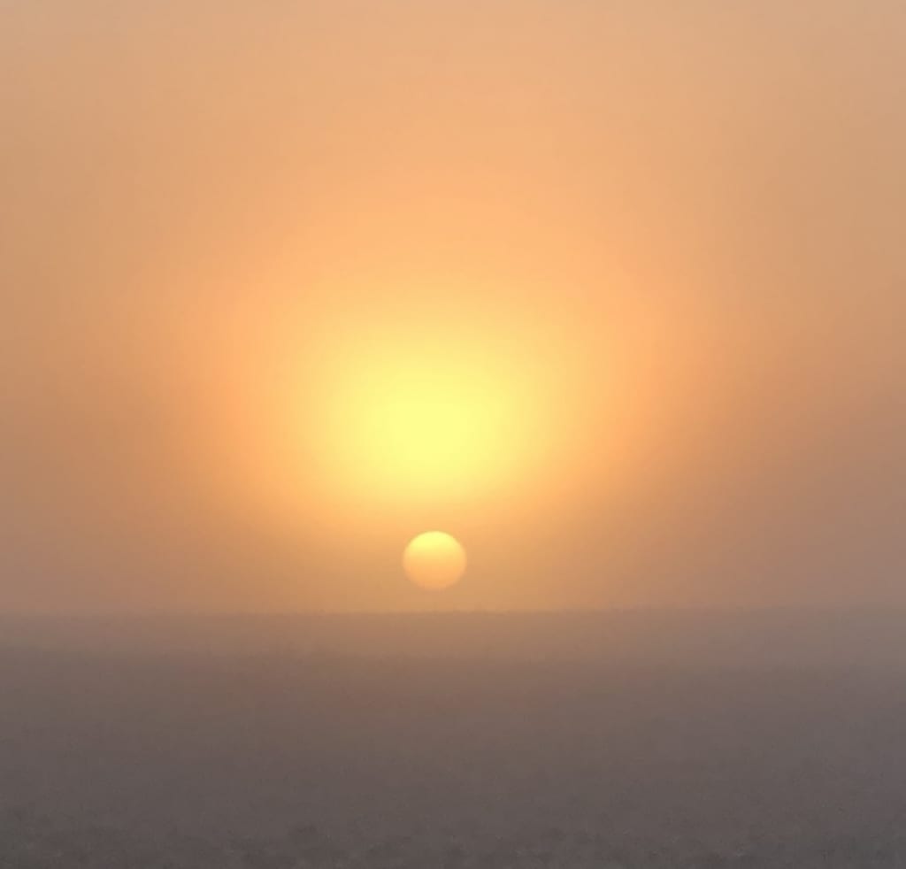 as she climbs the horizon at dawn