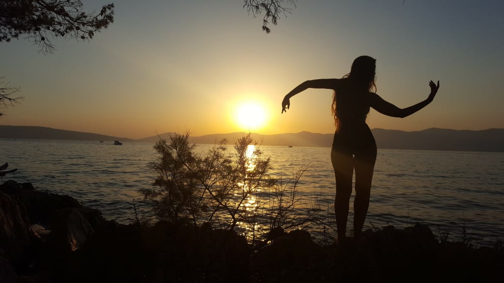 Her womb an orange sunset. Bearing the glory in and around us