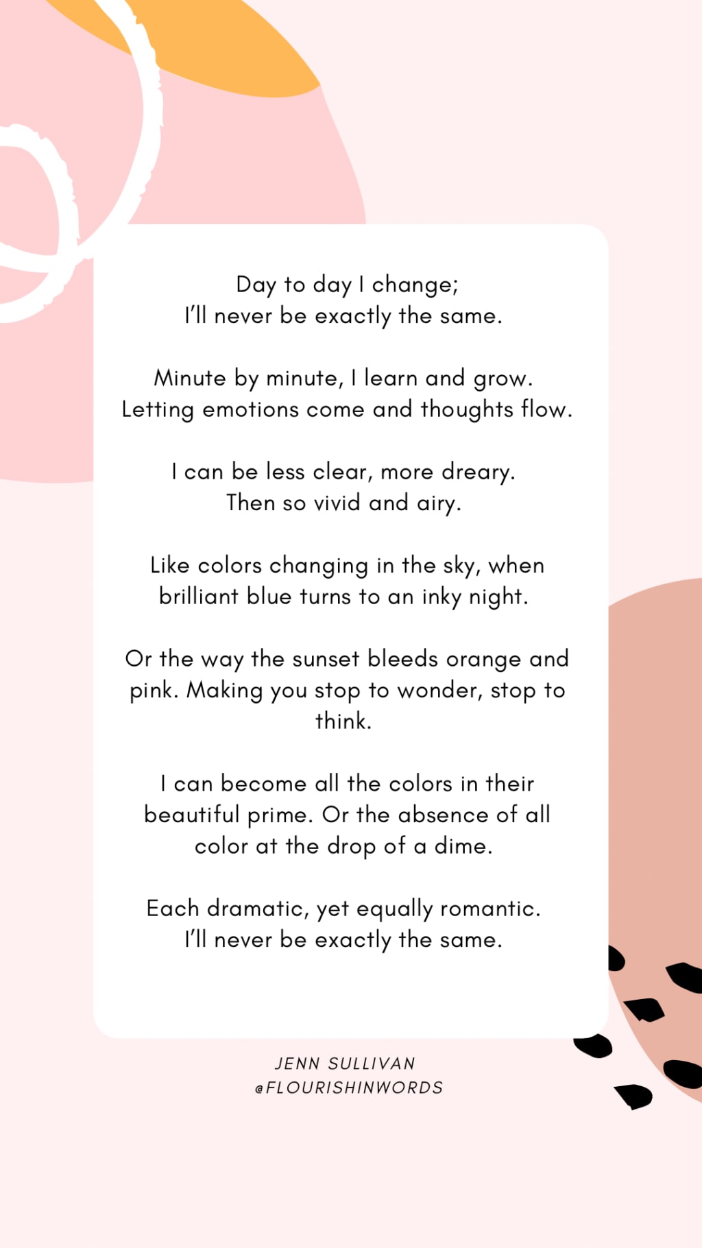 I can become all the colors in their beautiful prime. Or the absence of all color at the drop of a dime.