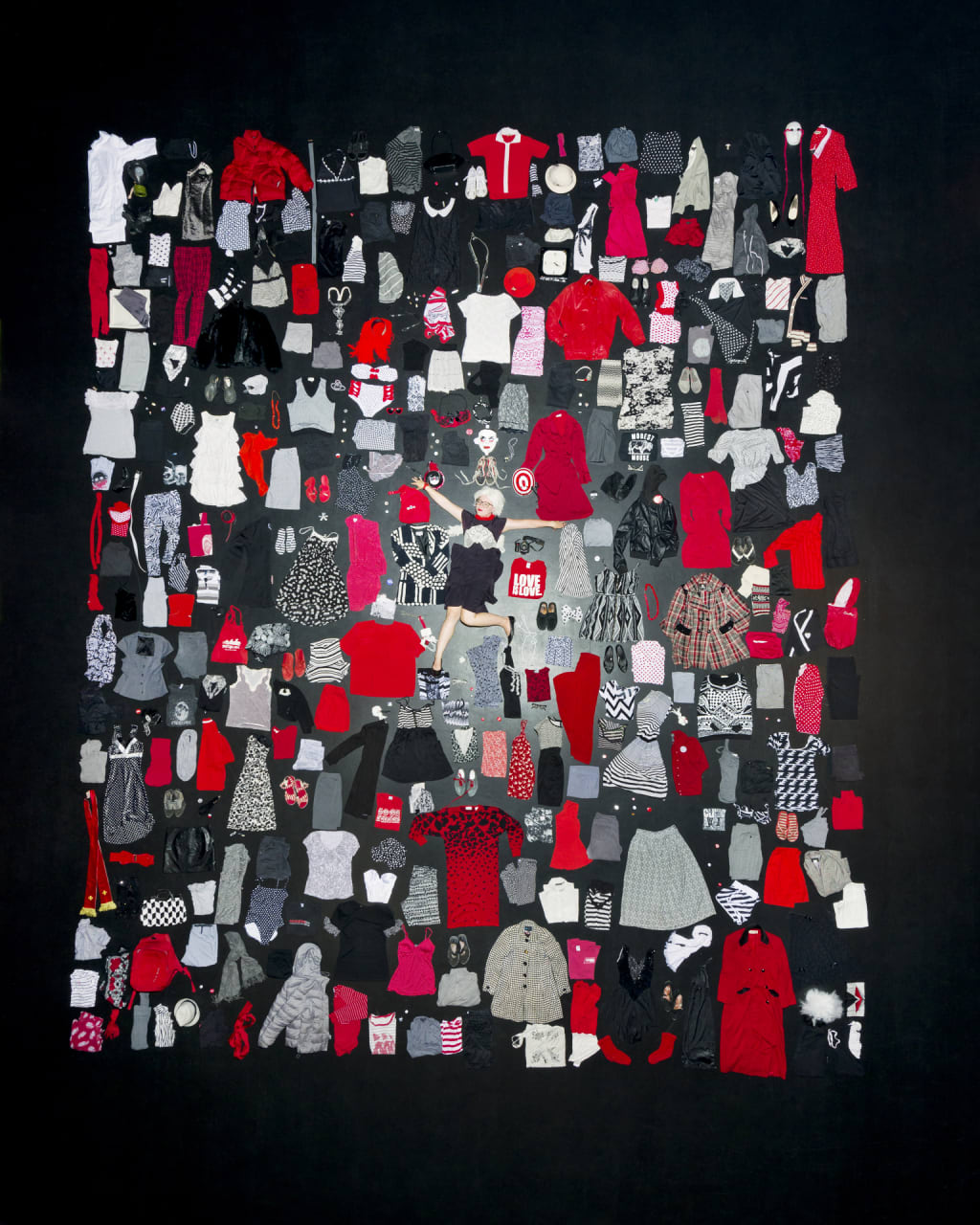 Red, black and white plus gray.