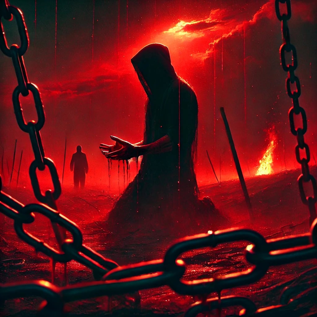 Red, the bite of severed ties,