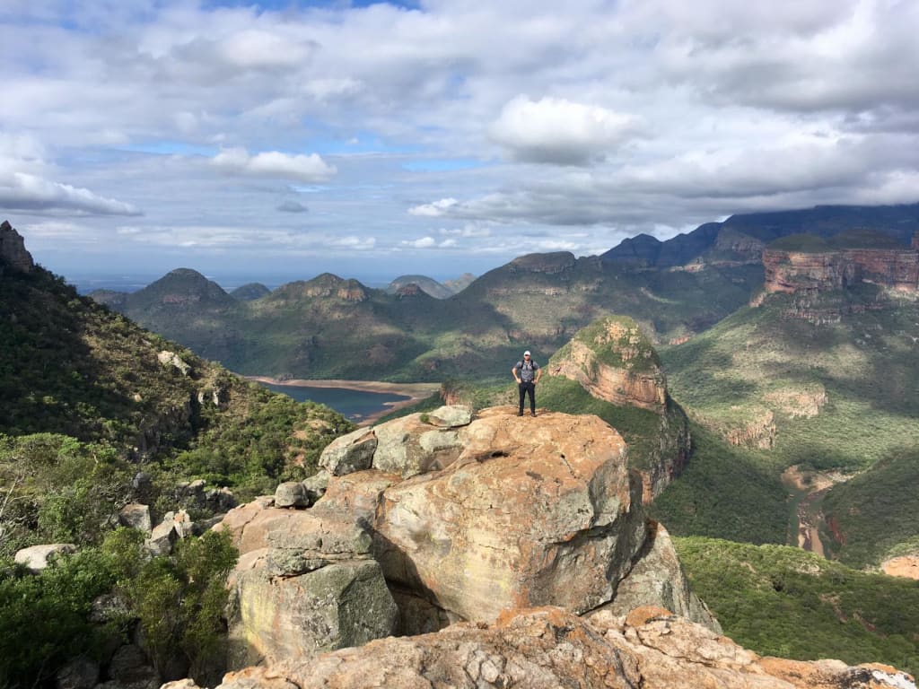 Theo on a rock in the Blyde River Canyon, South Africa, just before we met the baboon