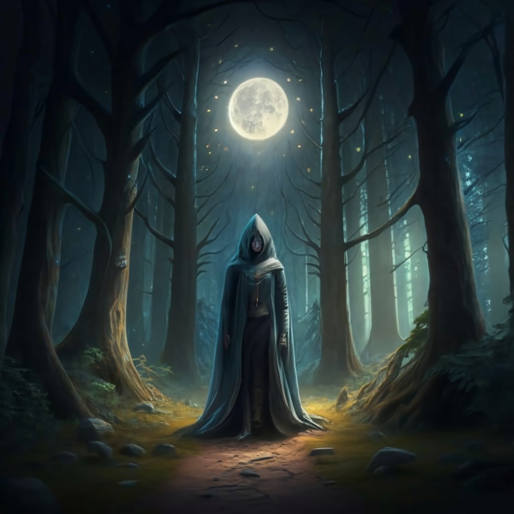 The guardian of silence, veiled in lunar light.