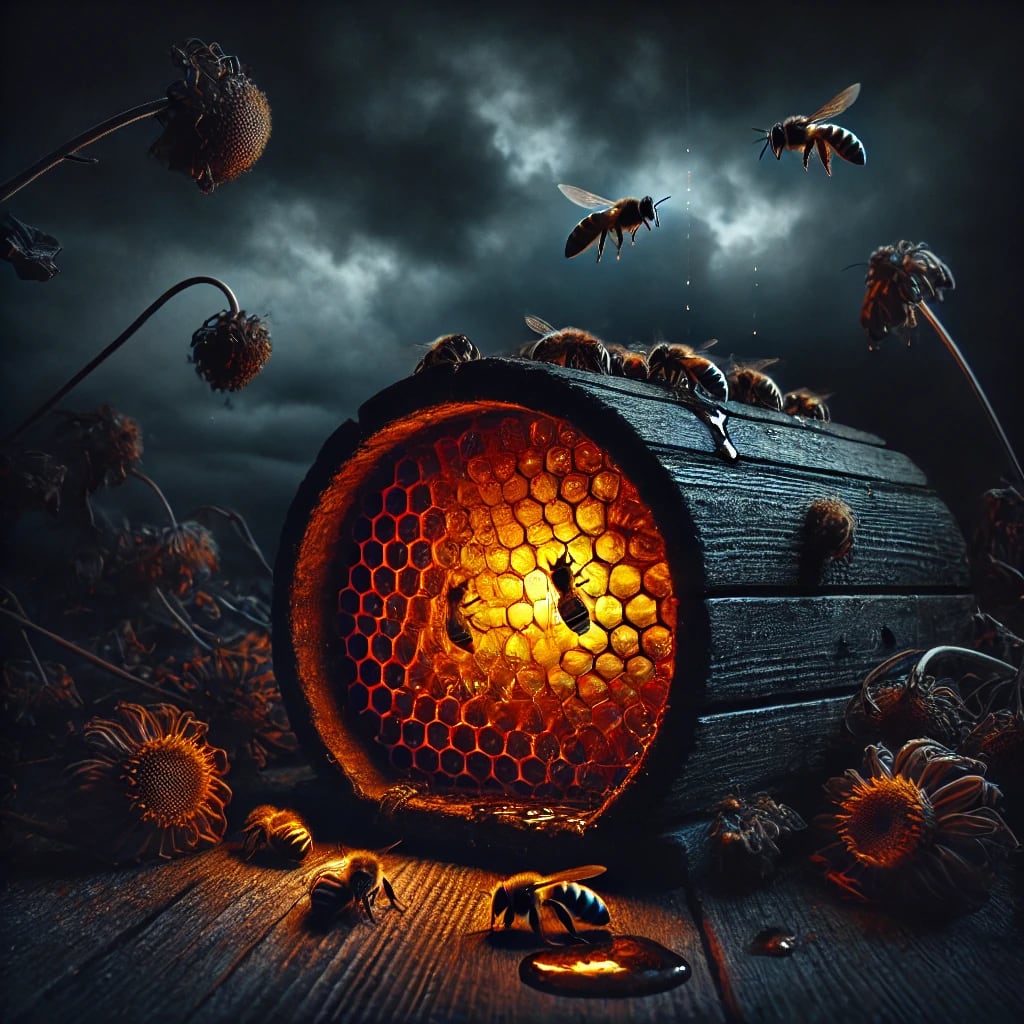 The silence of the bee’s poison honey —