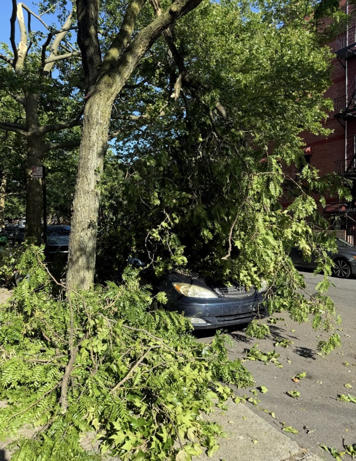 Sorry to hear that. I know many around here who lost power and still haven't got it back on and saw quite a few fallen trees. Luckily none hit us. Most sorry of all that you gotta deal with the insurance racket. This one's definitely not your daughter's fault! Hope they pay up promptly!