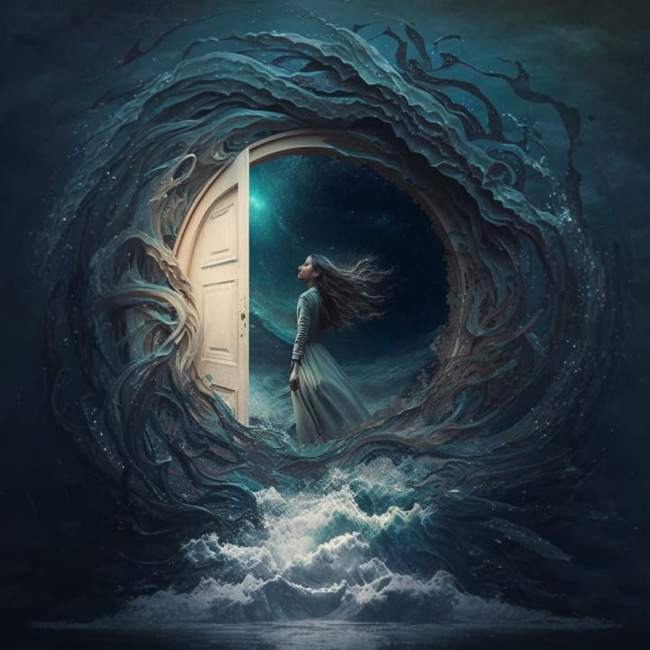 She raises a hand and vines part, for she is in control of all elements. A gentle arch of branches beckon. Towering cliffs of moss-covered rock cling to either side, framing the archway. A subtle mist of water wafts to her from the other side.