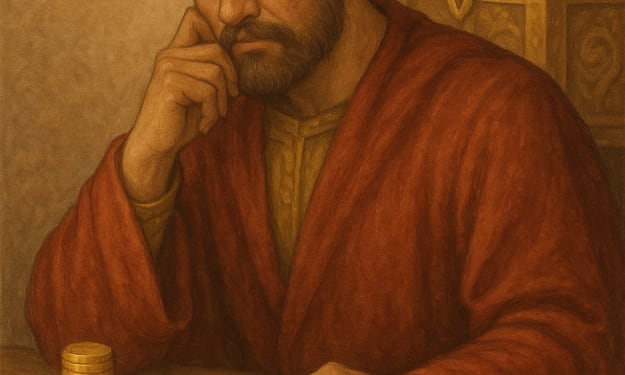 O mighty king, in robes so fine, You count each coin and draw each line, With emeralds set in sword and ring— But do you know your wealth, O king?