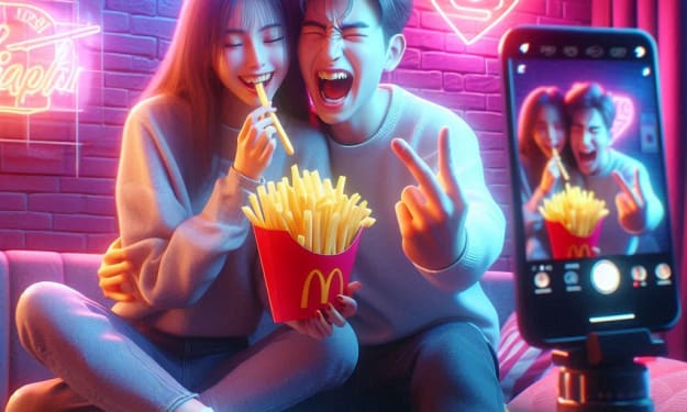 Our love is like a TikTok trend, It starts off slow, then jumps—ascend! One moment sweet, the next insane, Dancing through joy, looping again.