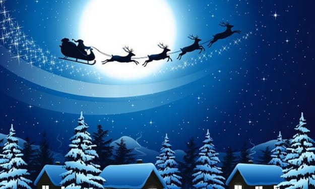 Santa’s Journey On A Frosty Night The first frost came on a cold, clear night, The ground was covered in icy white. The world was quiet, the air so still,
