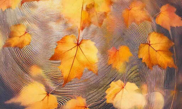 Amber leaves descend, spirals etch the autumn breeze— stillness greets the soul.