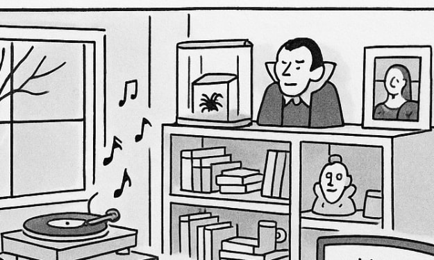 He came with tales like coiling smoke, With fingers long as funeral notes. His eyes, two bottomless pits of dread, Where lost men fall and never tread. He sat by me — not near, but in, The horror of him not on his skin — But in his breath, in every sound, That reached my soul and spun it 'round.