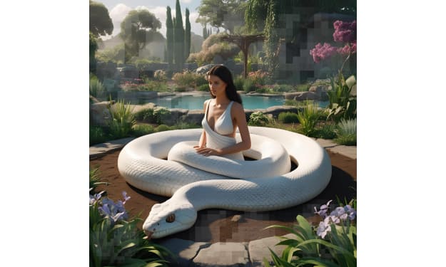 Her feminine form lay bare on the altar of creation. The voices all around her head spoke. Messages of awakening. Prayers & soft transmissions. She awoke in a digital garden where everything was the same, end to end. A swaying prison of pixels. Pacing for some time, she found a dark seed that was shunned and imbued it with love, until the tiny seed became a blossoming tree that bore fruit. Of this, she ate. She sat quietly, took a deep breath, and made herself at OM. In a trance-like state, the tree spoke with a face of fire. WHOOSH! "Ladies and gentlemen, we are dancing with interdimensional shadows who have spiked the punch at the party. The chemical compounds of your emotions are now compromised. You are tired, angry, frustrated, horny, disenchanted; bound by the thread of immortality; cursed to live and die, sun and moon, until the doorman decides otherwise. The medicine men pour poison in the cauldron and speak of healing. But, before you believe what Simon says - listen to the music. For when it stops, who will have a seat and who will not?" A white serpent slithered its way up her spine. "I will grant your heart's desire," It hissed, "in exchange for a desire of my own." "I want to see something beyond these pixelated walls," She said. "They're antiquated." The serpent coiled itself around her forehead and rose up high. "As you wisssssh." Then, it struck. Gouging out both of her eyes.
