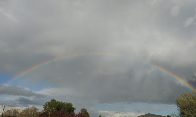 I am red and orange, yellow and green. I am blue, indigo and violet. I am a rainbow. Red roses and passion turn to anger and hate. Orange leaves that fall, die and disintegrate.