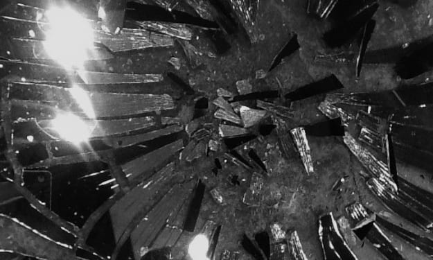 I step through the broken glass remains of my anger glimmering on the floor ------ I just can’t take it anymore