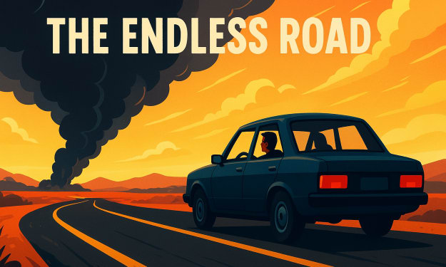 The Endless Road Shadows drift across the hood, a restless silence fills the night. Moments fracture like broken glass,