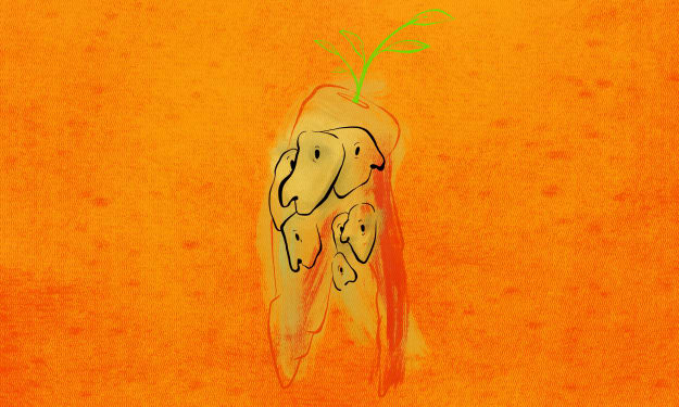 asked me if i stopped eating so many carrots "no i have not" but they want me to stop -- why do you -- i just like carrots -- can't explain it -- it's part of my identity -- "but your skin is turning" -- i like it, i tell them -- you -- yes -- want to be ORANGE? -- i guess so -- you do -- i guess so? -- look at the inside of my palms -- "show us your palms" -- no -- "look they're orange!" -- they're bright orange jacked up i'm a jack-o-lantern overripe citrus even my driver's license photo i look oversaturated makes my clothes dull in comparison reason i dig tie-dye tee shirts neon leather pants anything that sparkles or shines or screams -- "or you could stop eating carrots" -- anything bright or unexpected or fuzzy or NOT -- why not? -- i...don't know -- you're an addict -- it's more like -- it's more like -- an identity -- and i mean they taste good -- you are what you eat -- beta carotene? is a vitamin -- i guess? -- is it healthy? -- are you okay? -- the doctors sit me down and say: