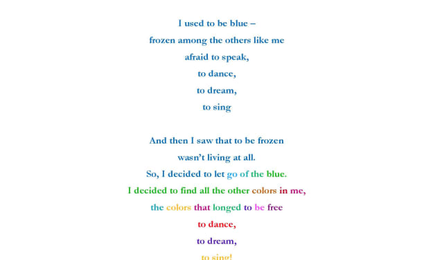 I used to be blue – cold and afraid… afraid of my truth, my light, my love, my power. I used to be blue – frozen among the others like me