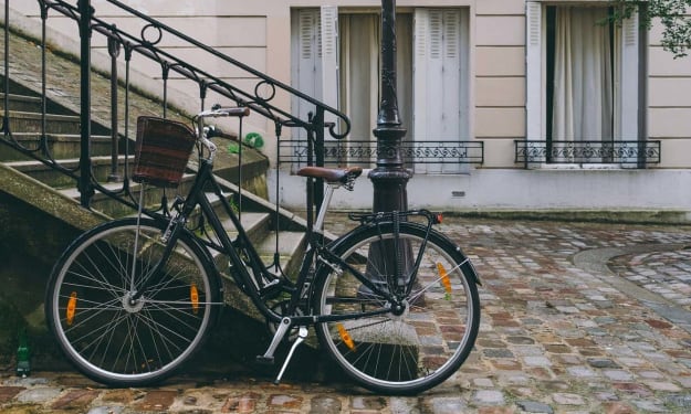I’m looking at the handlebars that’s all that’s left of the bicycle outside Bobar on Boulevard Henri IV I’m pretty sure the whole thing
