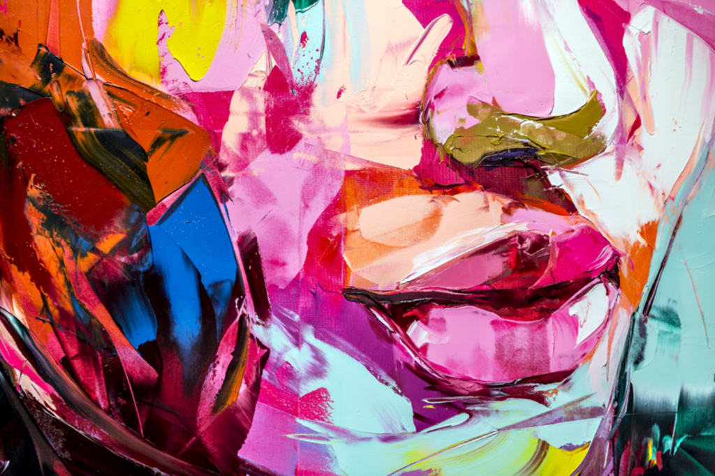 Color can exhaust you, with streaks of blue down a cheek, blemish forming on the skin, the grey hue of despair creeping.