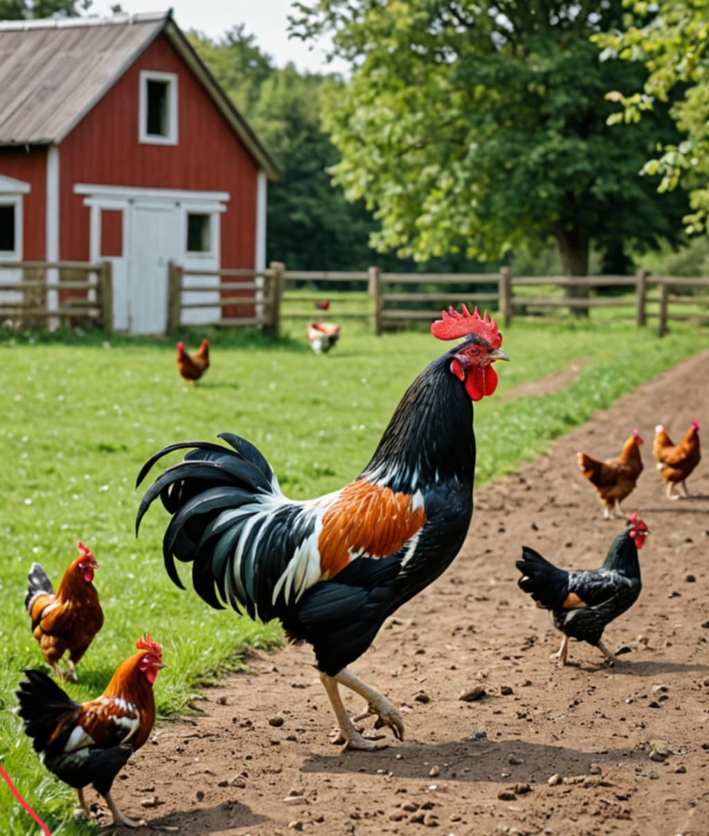 The cock then perched on the old fence post