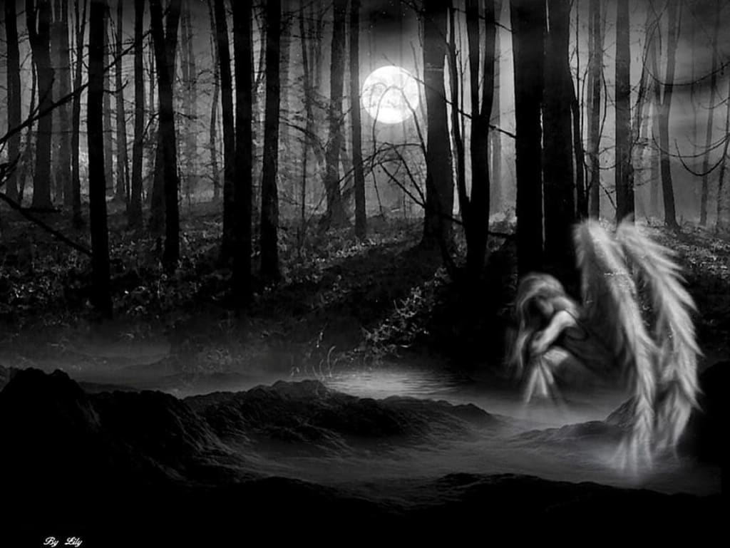 I am an angel of the night, with tears in my eyes and pain in my heart, searching once again for light. But I always lose myself in sadness, in the hopeless solitude of a sorrowful night angel. I lost myself somewhere in the night, but it was beautiful, just like me, captured by emptiness and sorrow. For it, there is a sun—it has hope for light. My beautiful darkness found its light and hope, while I remain imprisoned by hopeless sorrow. I cannot escape this sadness. I know there will be no rainbow for me, no light. This is the curse of the dark angel of the night.