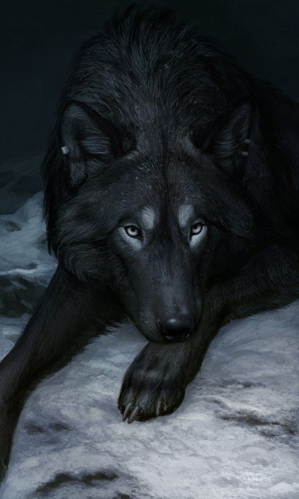 His light grey eyes glow in the darkness.