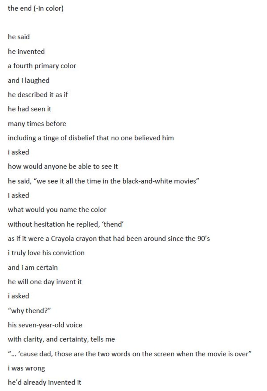 “‘cause dad those are the two words on the screen when the movie is over”