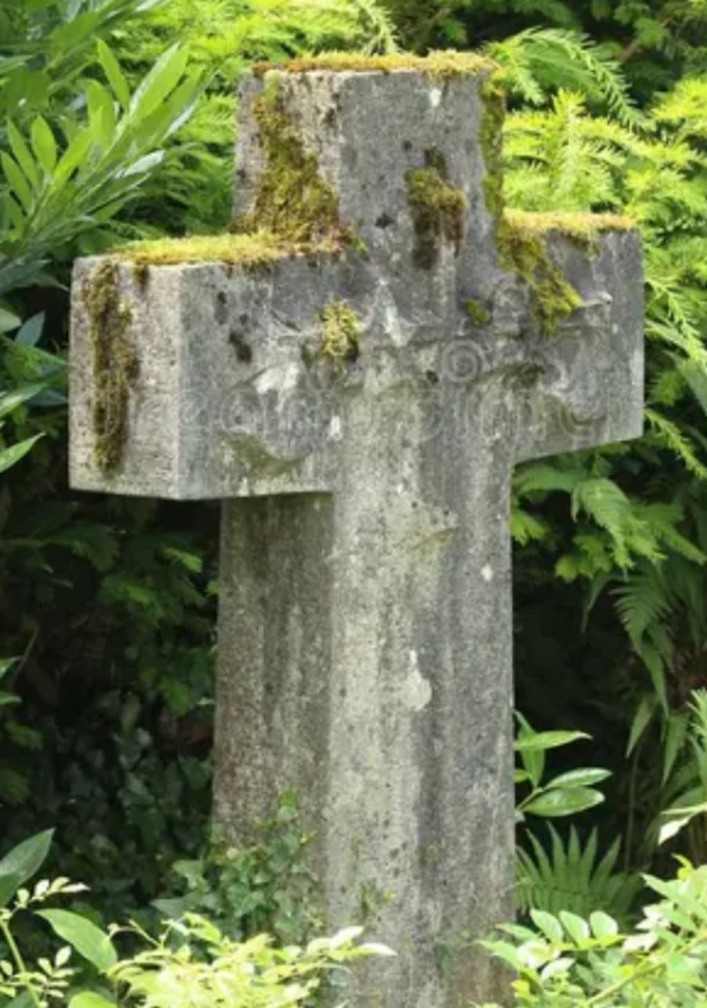 A name half-hidden by the moss,