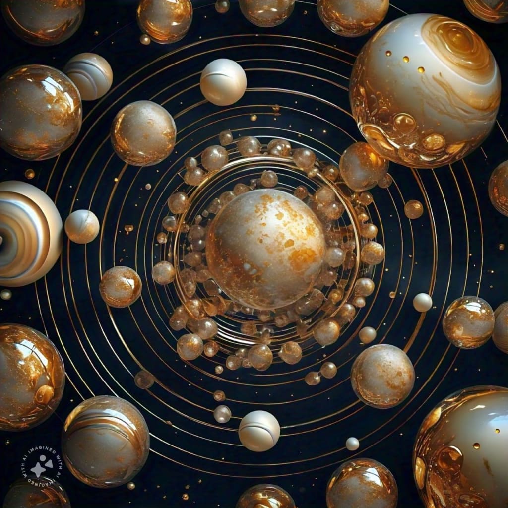 Their orbits weaving, a tapestry so fine