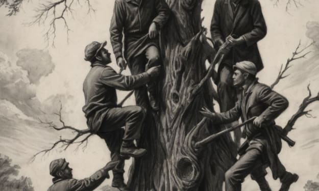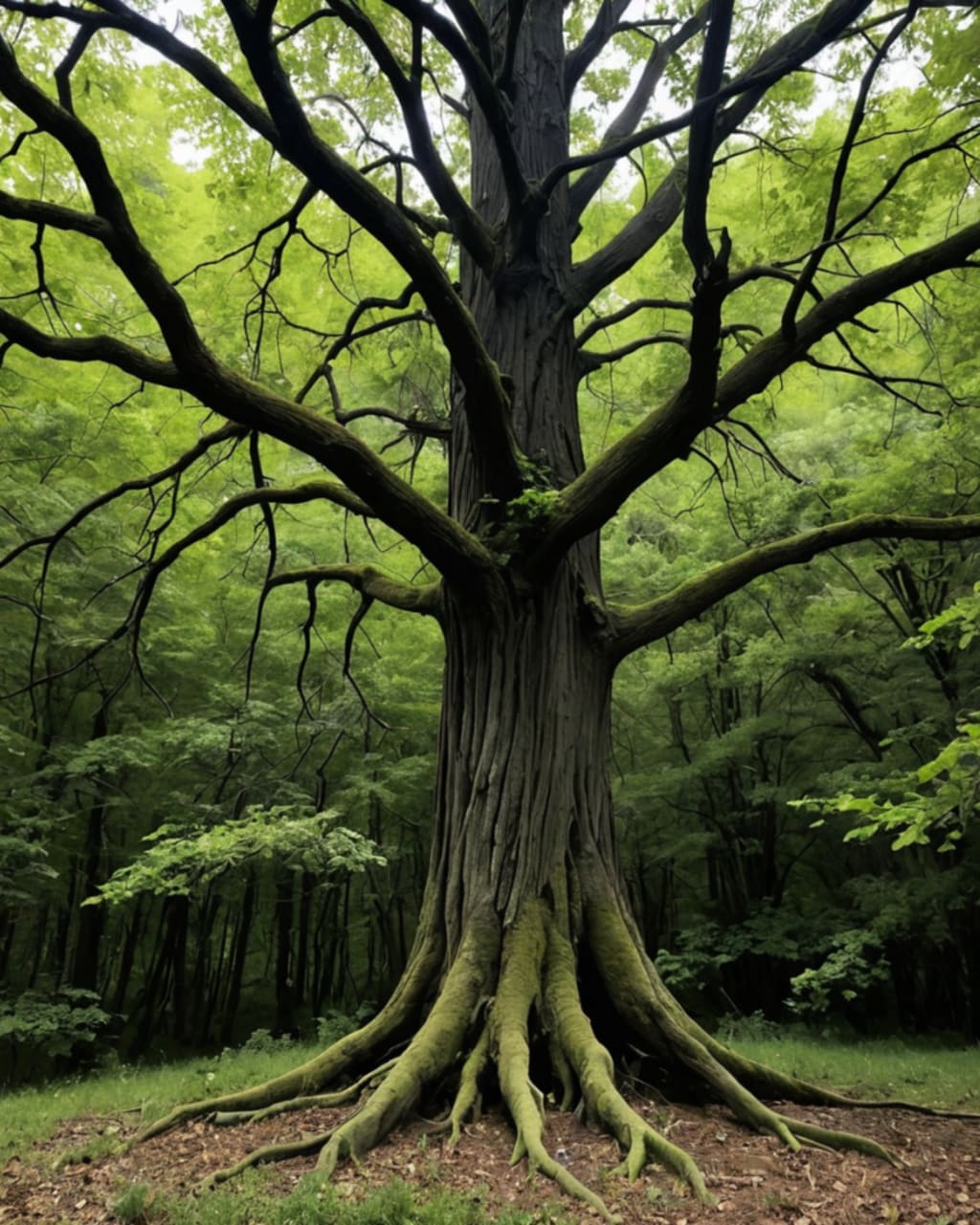 In the dark of the woods, a tree does stand,