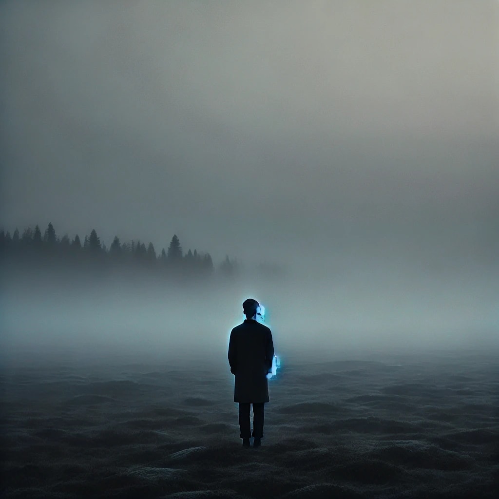 hiding words behind its haze.