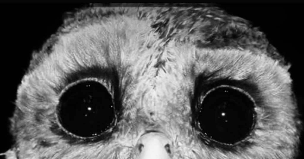 I am the owl with piercing black eyes