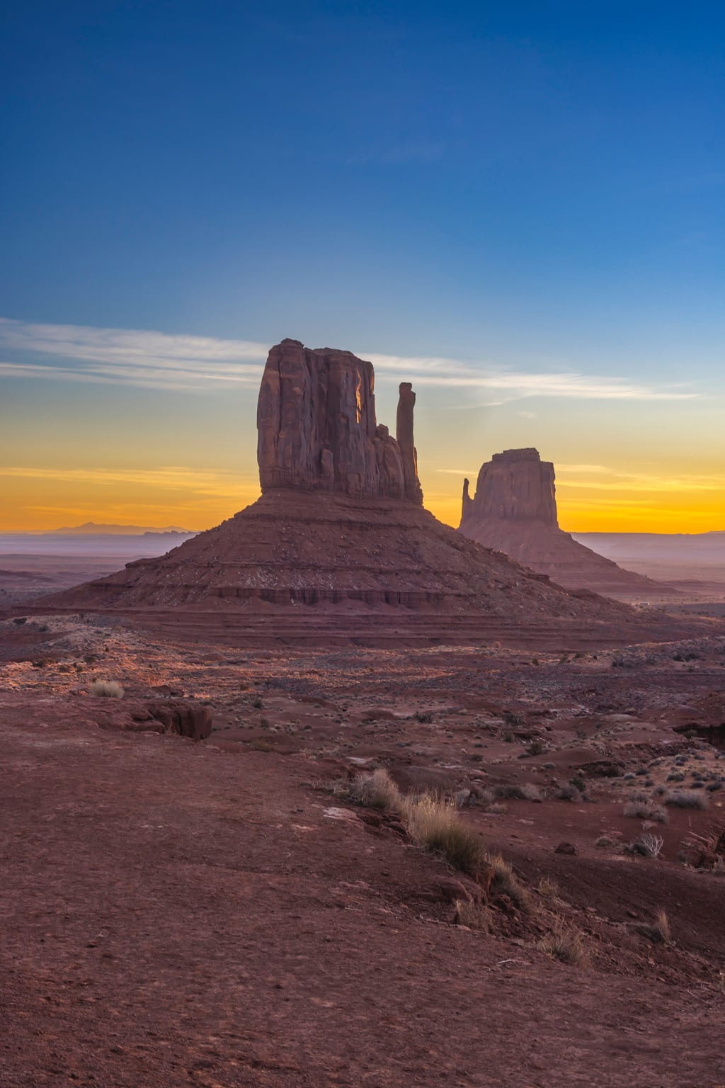 Yellow glow at dawn in Monument Valley