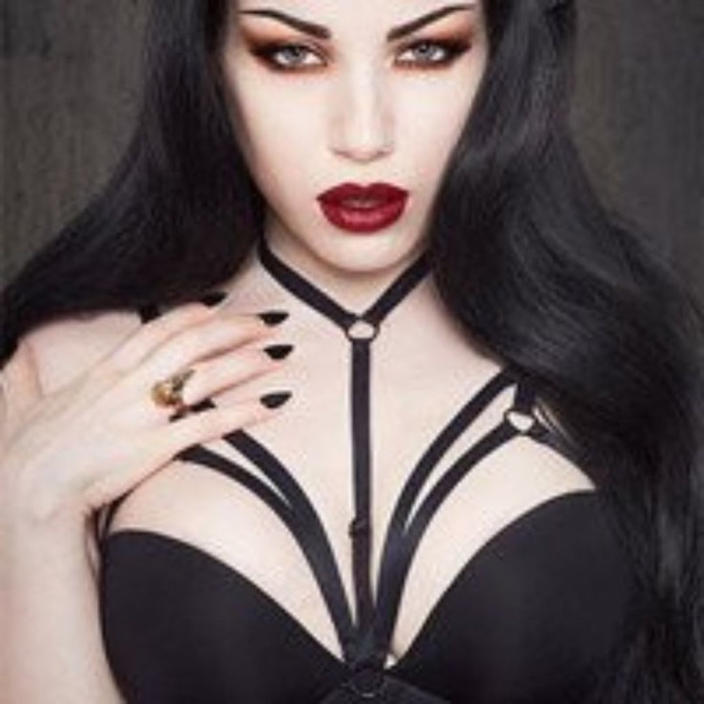 Touching her black velvet dress,