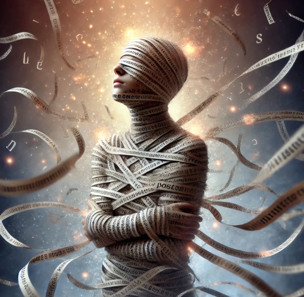 Tie me up in strips of words,