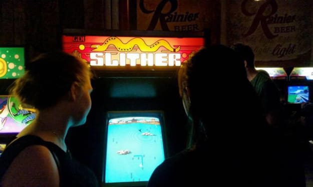 play it again. dig up a sticky coin from your endless pocket and let the arcade-crazed crowd scream and jostle your arm against mine as we