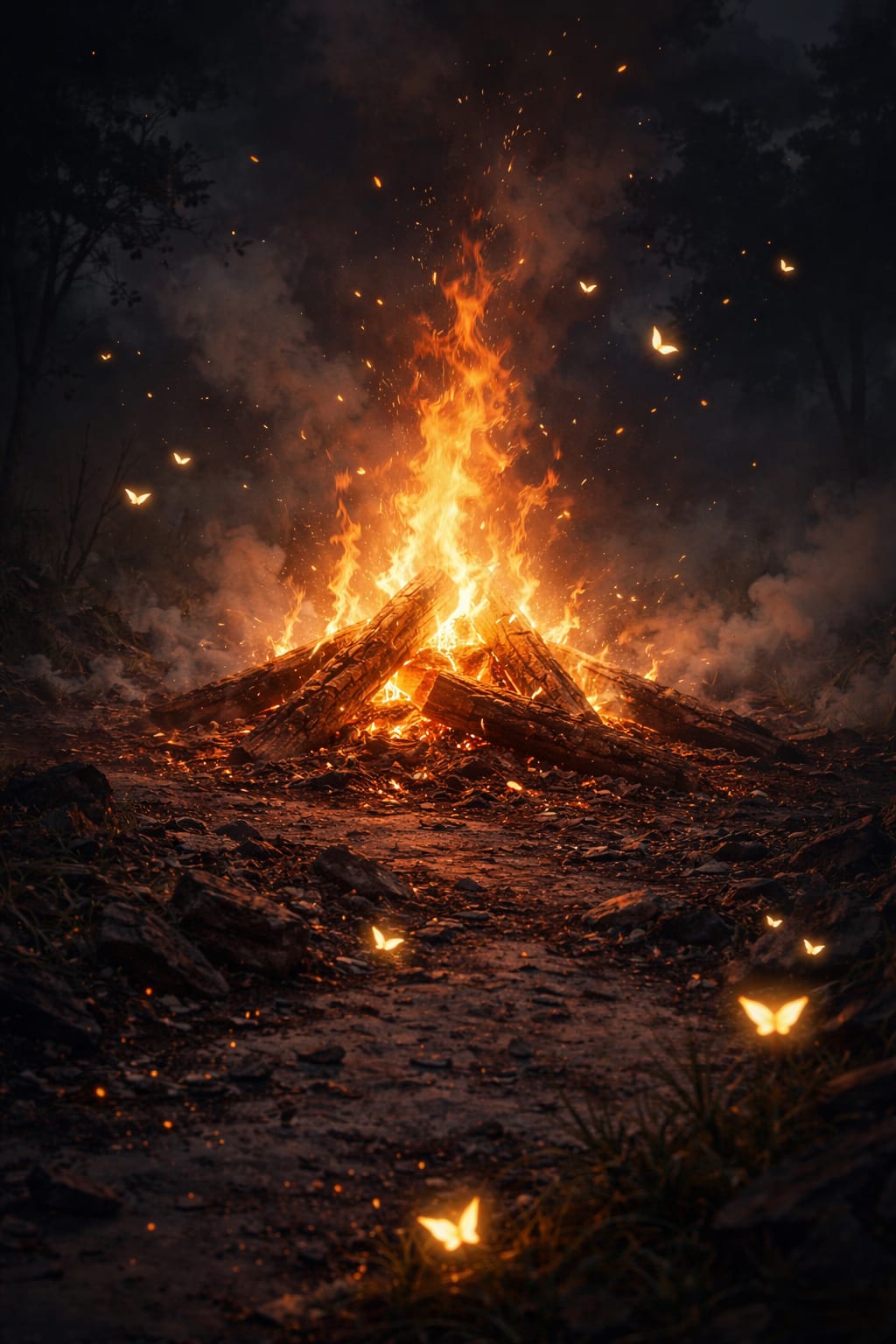 The embers blink, they’re fireflies,