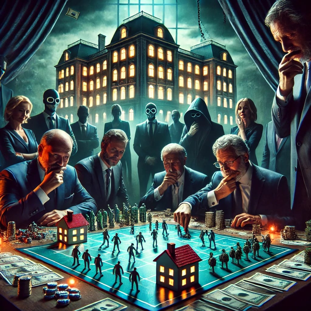 yet pockets swell with silent greed.