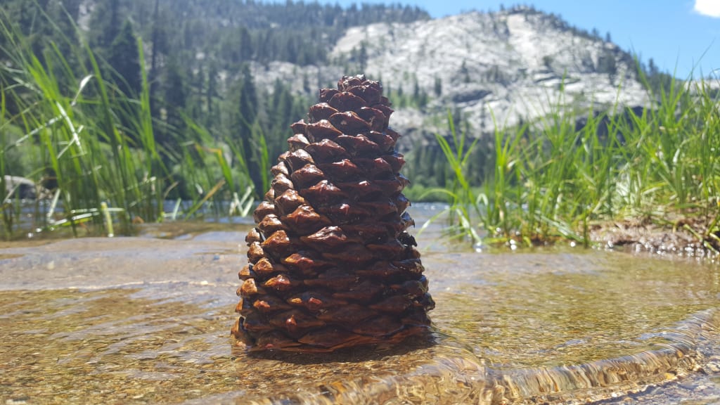 image of the pinecone in the water on the