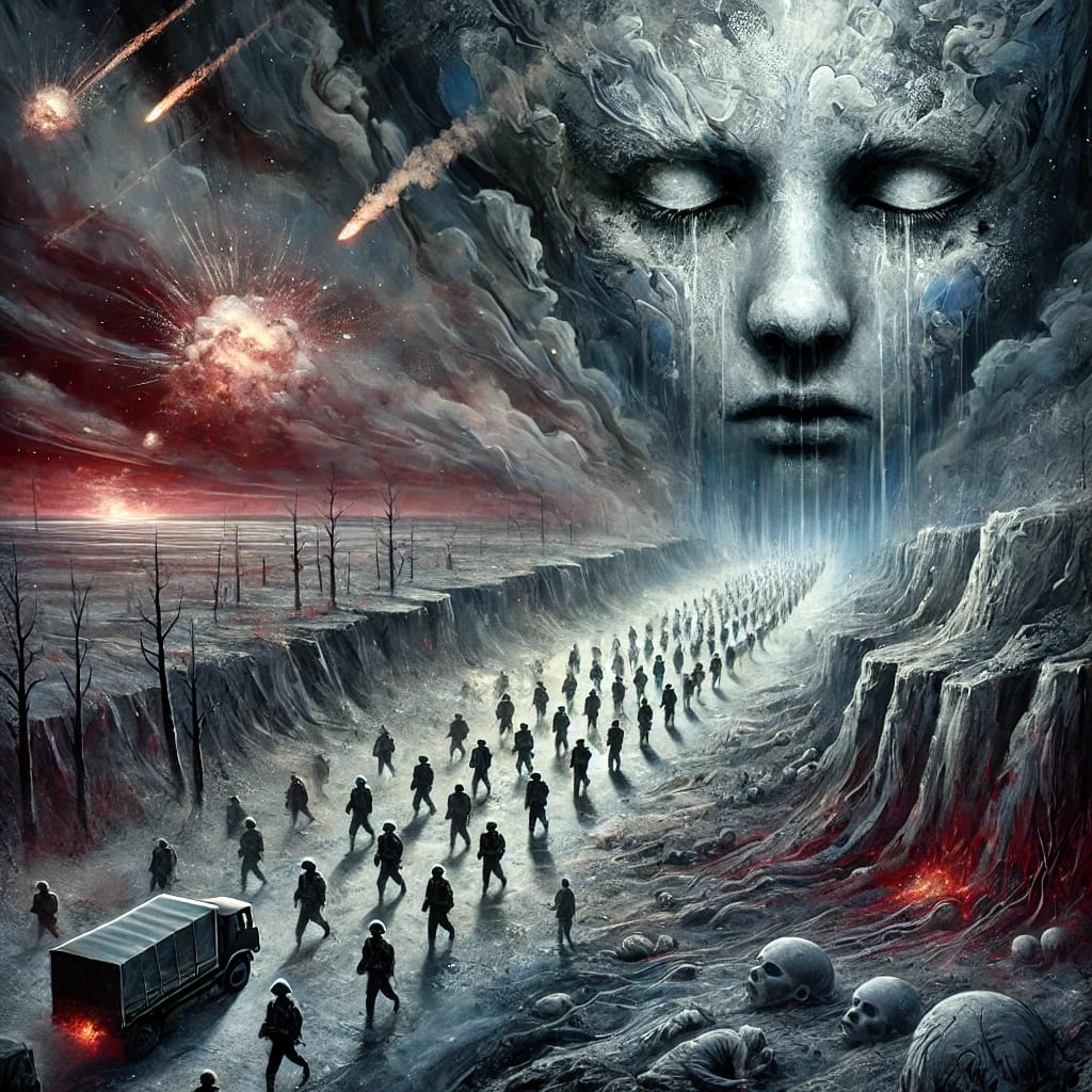 In trenches of the soul, despair engraved.