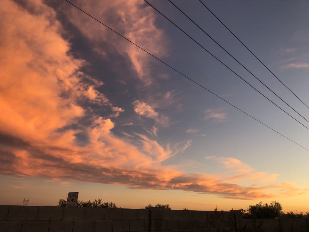 to the pink and orange Arizona skies,