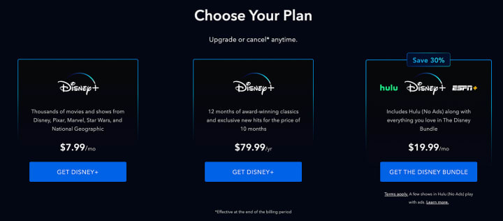 Disney+ Subscription Plans