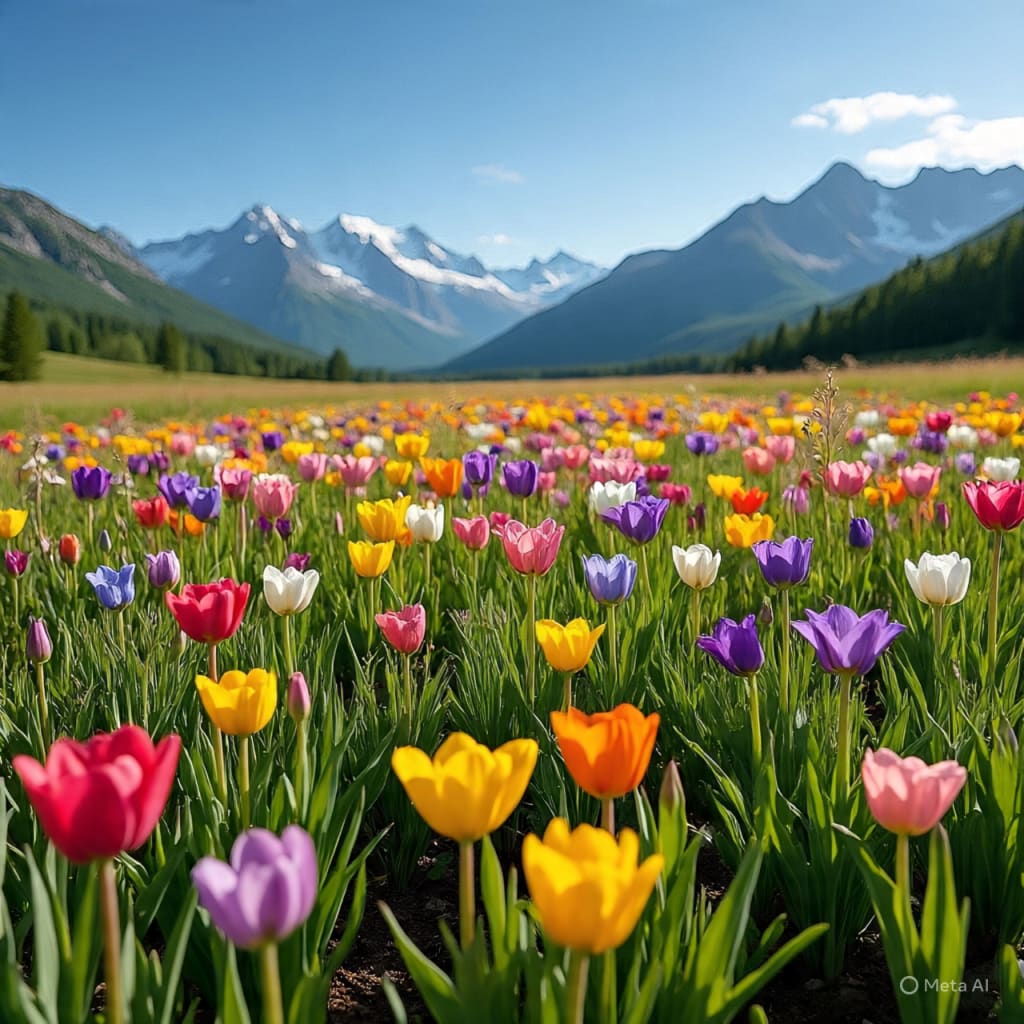A valley blooms with colors free—