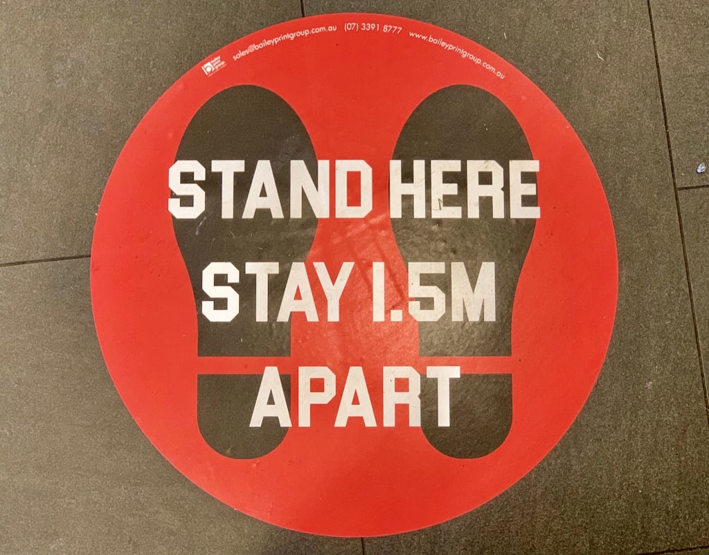 People usually stand six feet apart in line