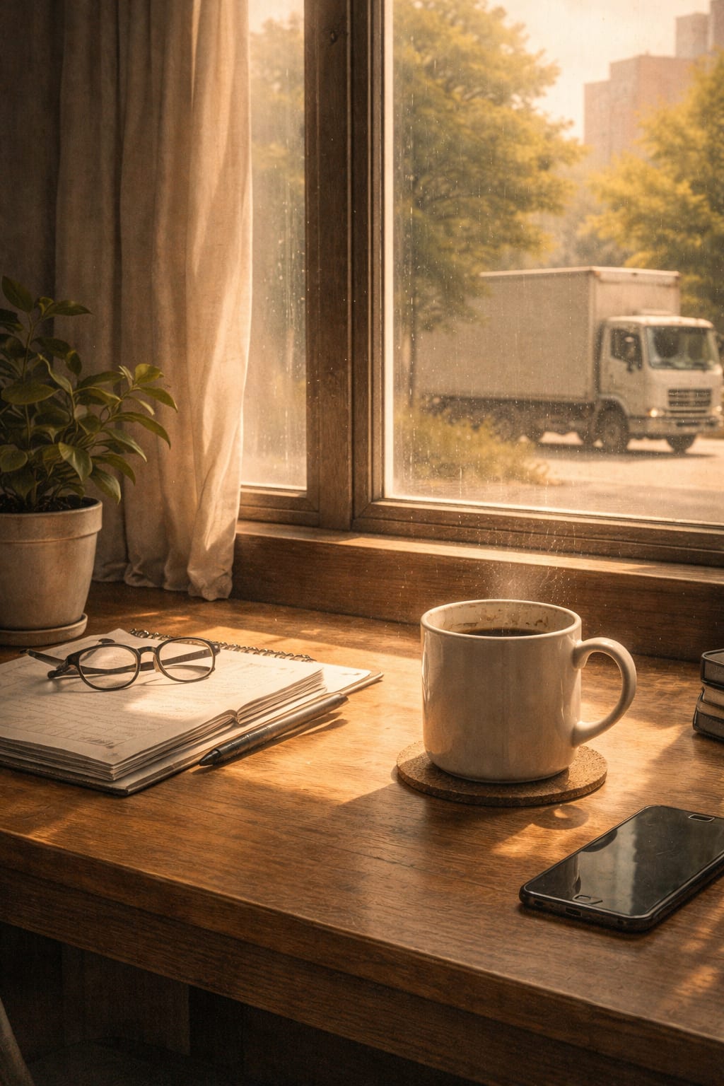 A truck passes slowly by